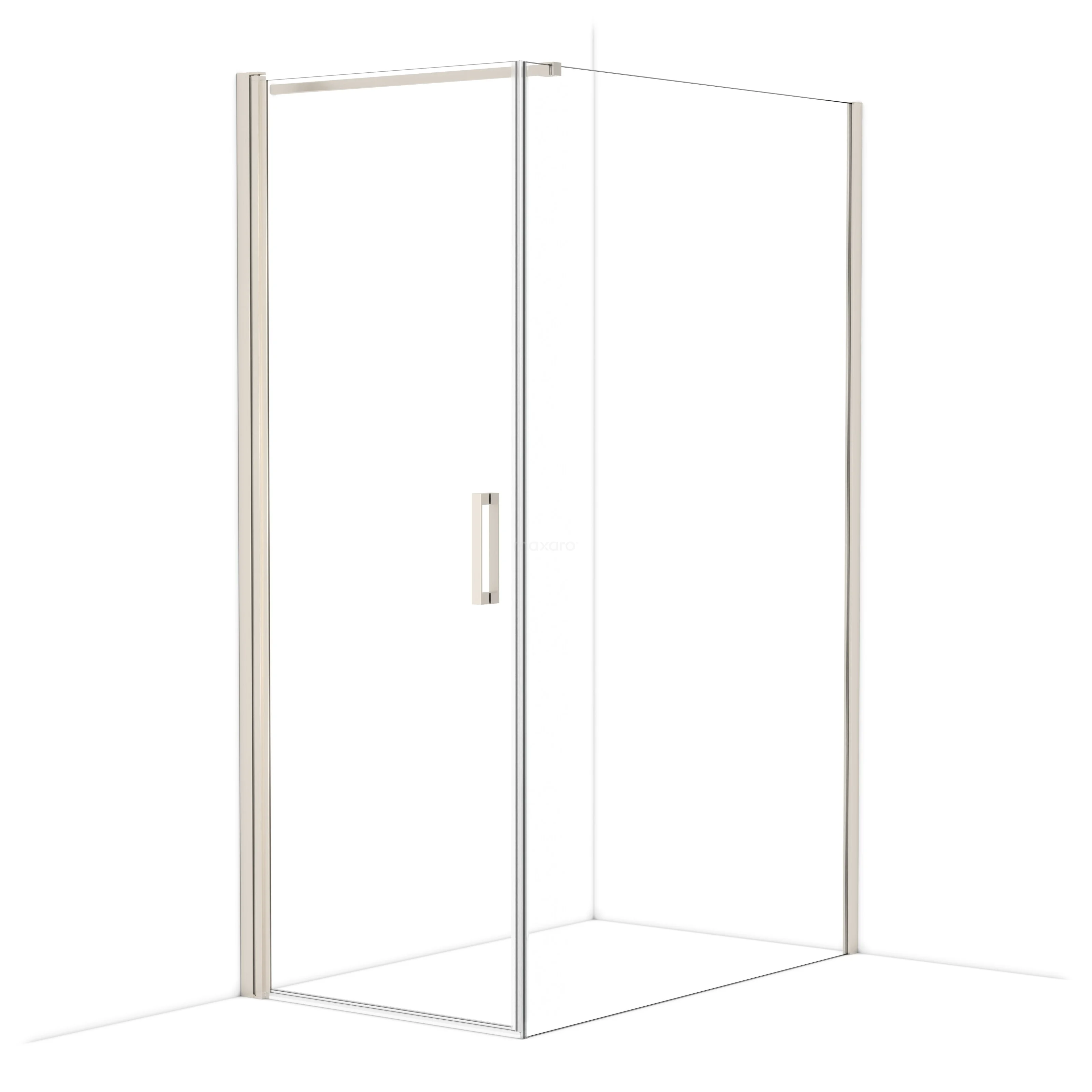 The shower cabin is equipped with a hinged door, allowing you to have the full entry space available.