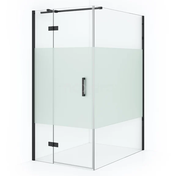 Diamond Shower cabin | 140x100 cm Black chrome Clear with matt strip Pivot door Rectangle