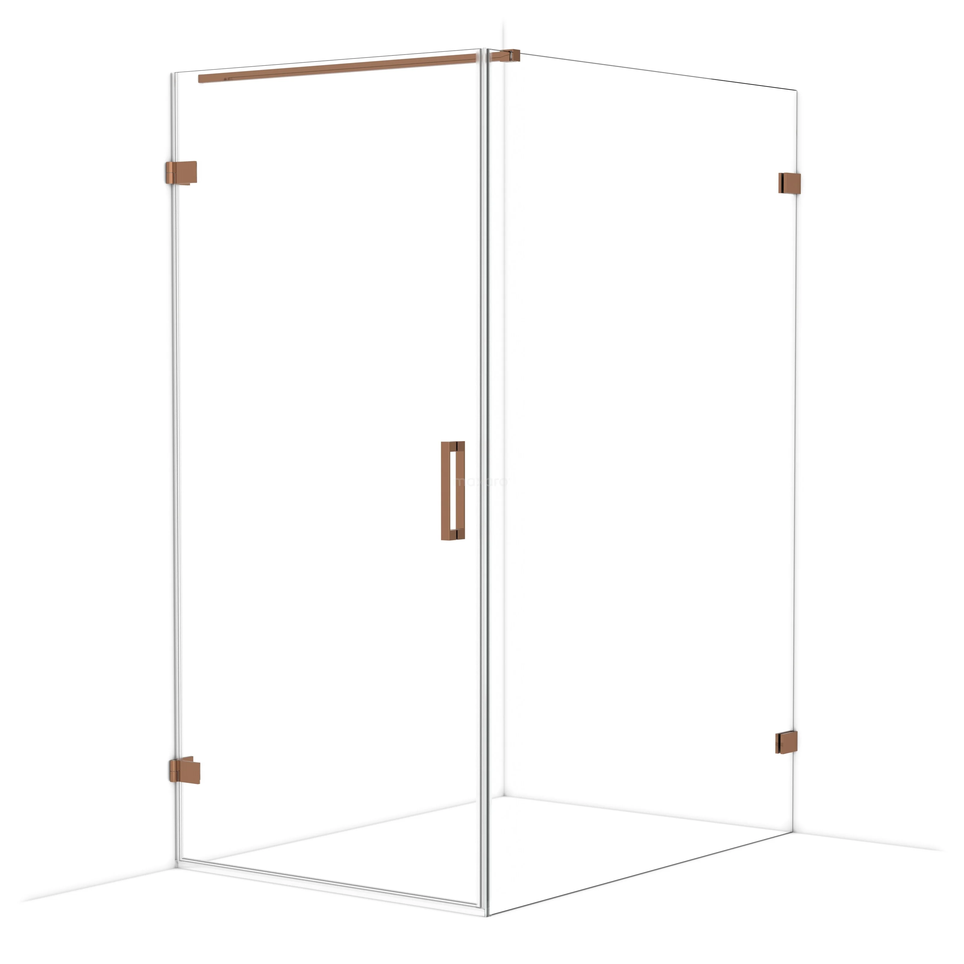 In the stylish Diamond shower cabin measuring 140x100 cm, you can enjoy delightful shower sessions every day. This rectangular cabin is characterised by a two-point attachment and the vertical handle. This model features a striking design in shiny copper and is equipped with clear glass for a spacious feel. The door side has an absolute measurement of 98.1 cm. The fixed wall is adjustable, allowing you to easily make it fit.