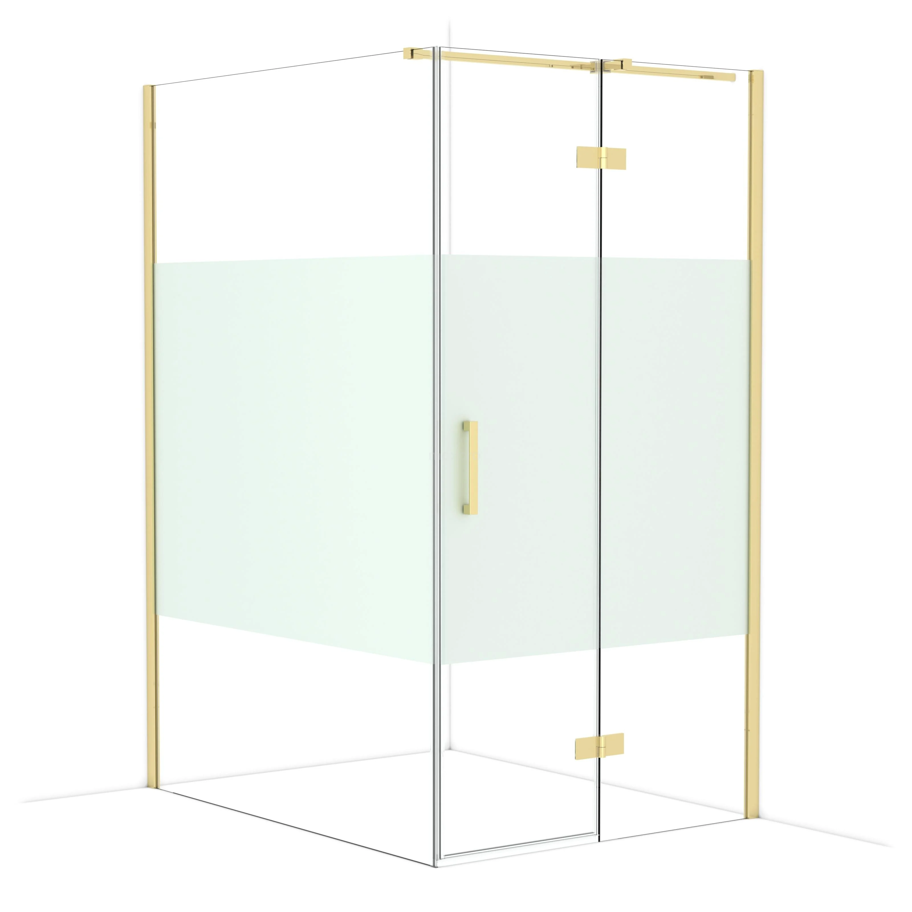 In the stylish Diamond shower cabin measuring 140x110 cm, you can enjoy delightful shower sessions every day. This rectangular cabin is characterised by a wall profile and a vertical handle. This model features a refined and luxurious design in glossy light gold and is equipped with clear glass with a matte strip for more privacy. The shower is adjustable, making it easy to fit.