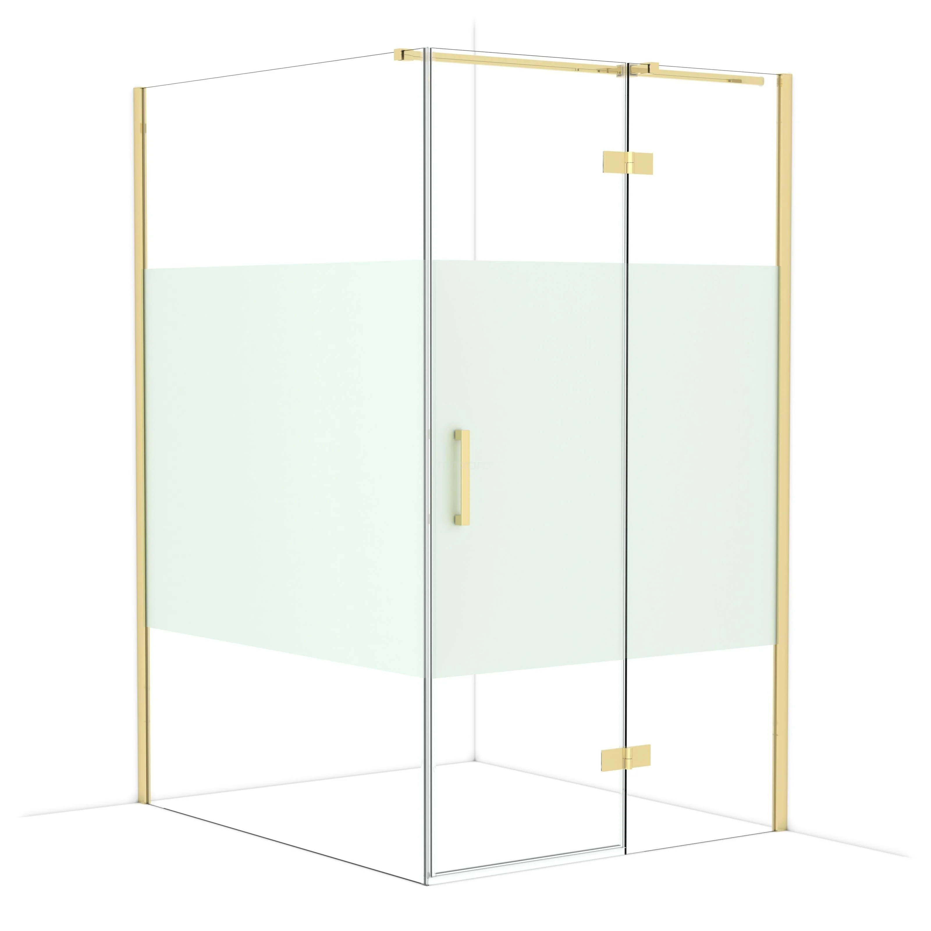 Diamond Shower cabin | 140x120 cm Shiny light gold Clear with matt strip Pivot door Rectangle