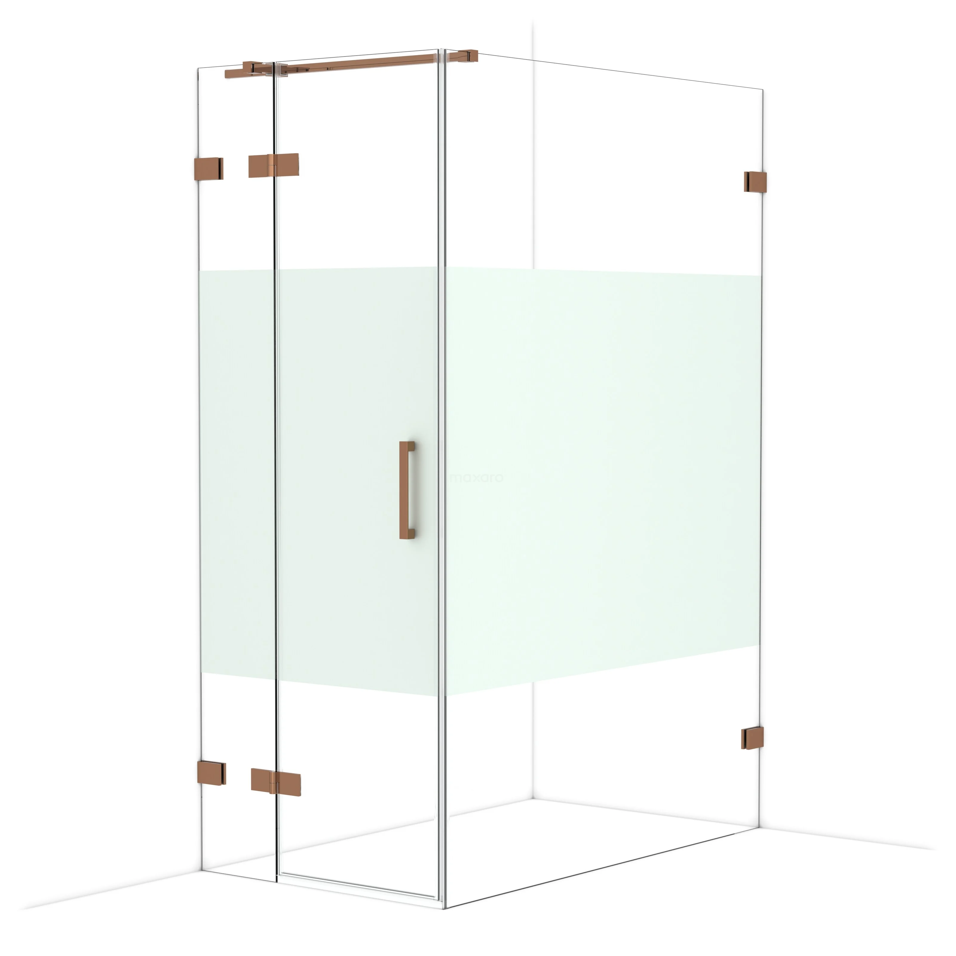 Diamond Shower cabin | 140x80 cm Shiny copper Clear with matt strip Pivot door Rectangle