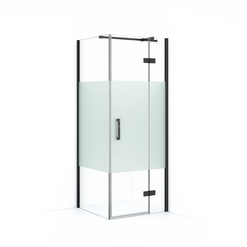 Diamond Shower cabin | 80x80 cm Black chrome Clear with matt strip Pivot door Square