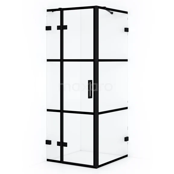 Diamond Shower cabin | 80x80 cm Matte black Clear with 4 black stripes Pivot door Square