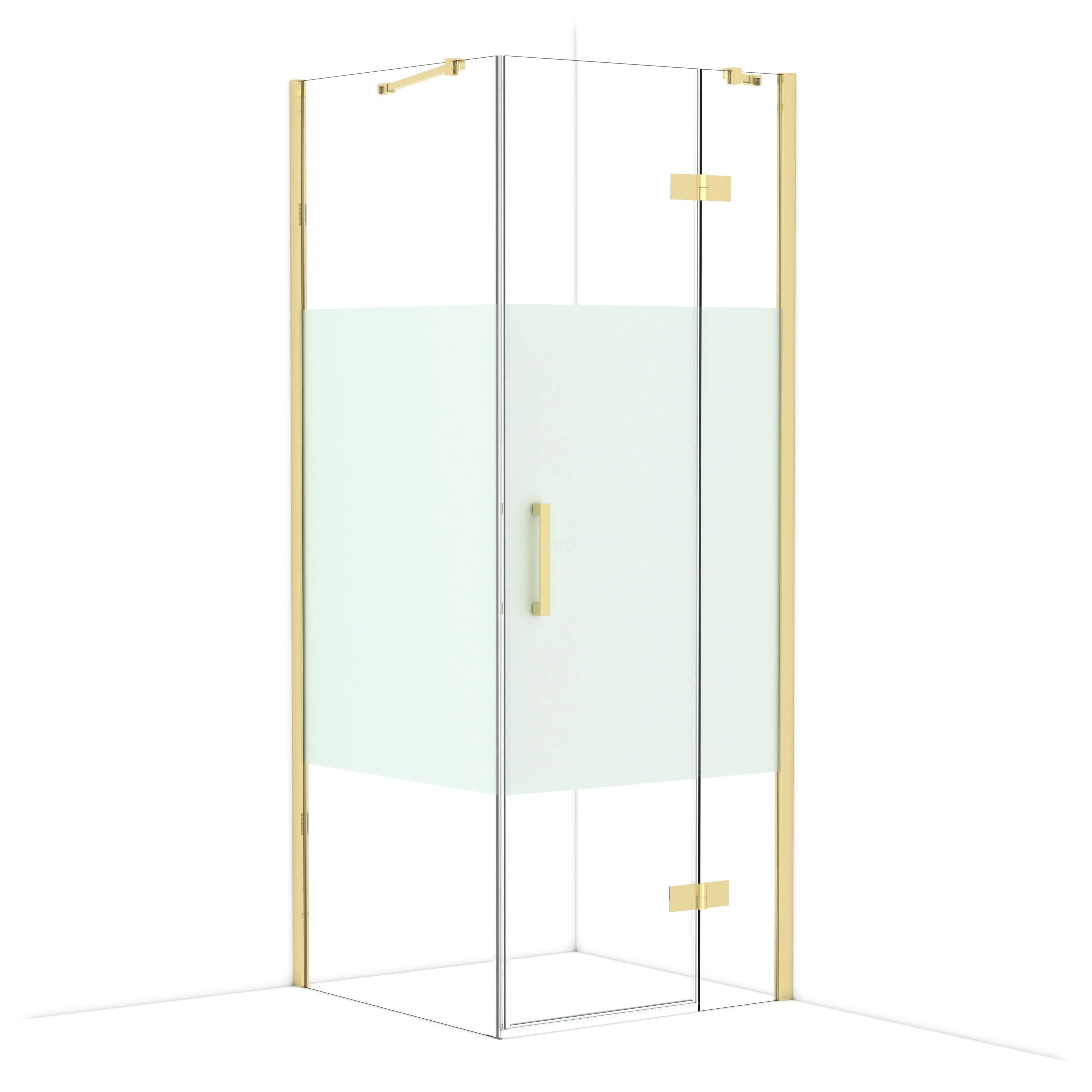 In the stylish Diamond shower cabin measuring 80x80 cm, you can enjoy delightful shower sessions every day. This square cabin is characterised by a wall profile and a vertical handle. This model features a refined and luxurious design in shiny light gold and is equipped with clear glass with a matte strip for more privacy. The shower is adjustable, allowing you to easily make it fit.
