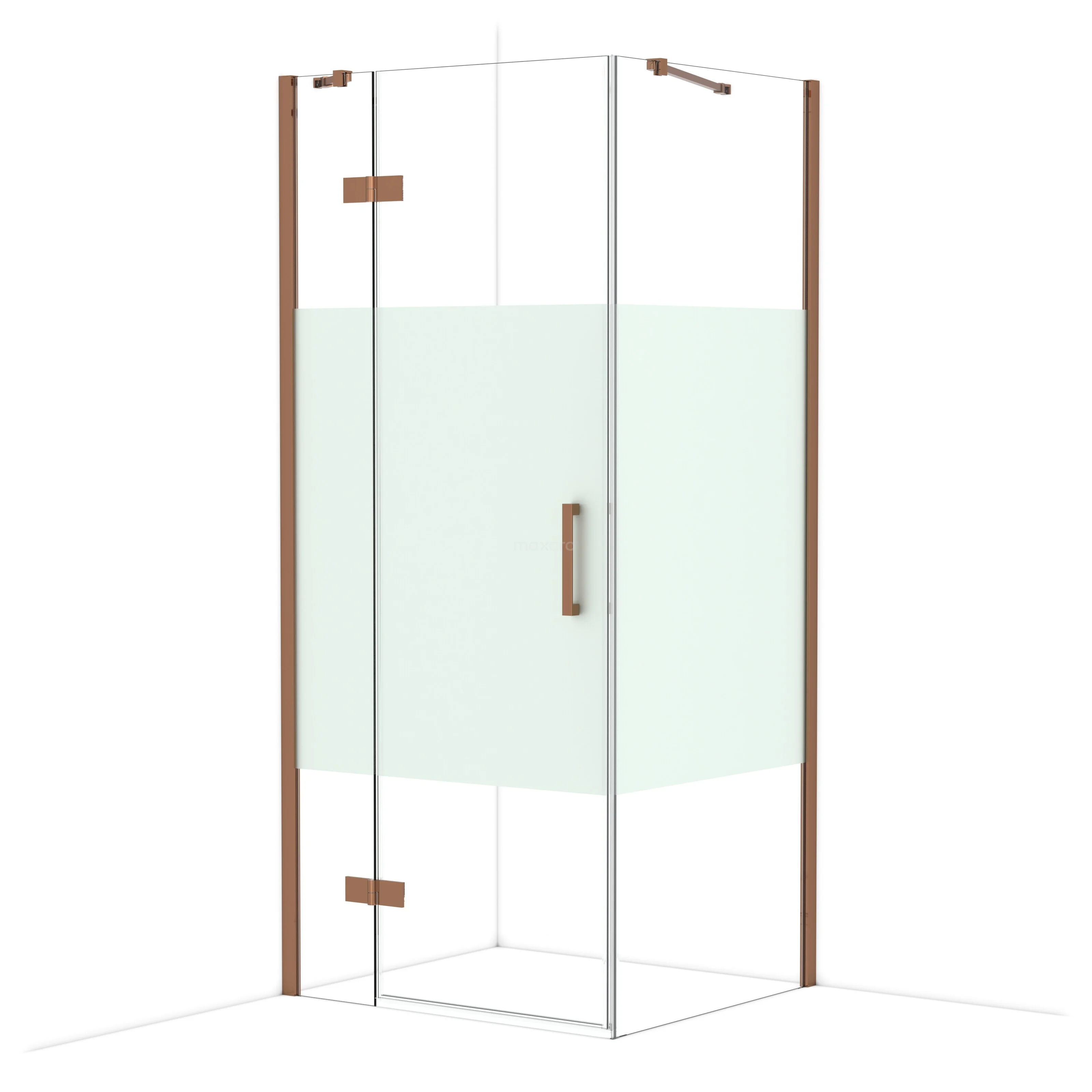 Diamond Shower cabin | 90x80 cm Shiny copper Clear with matt strip Pivot door Rectangle