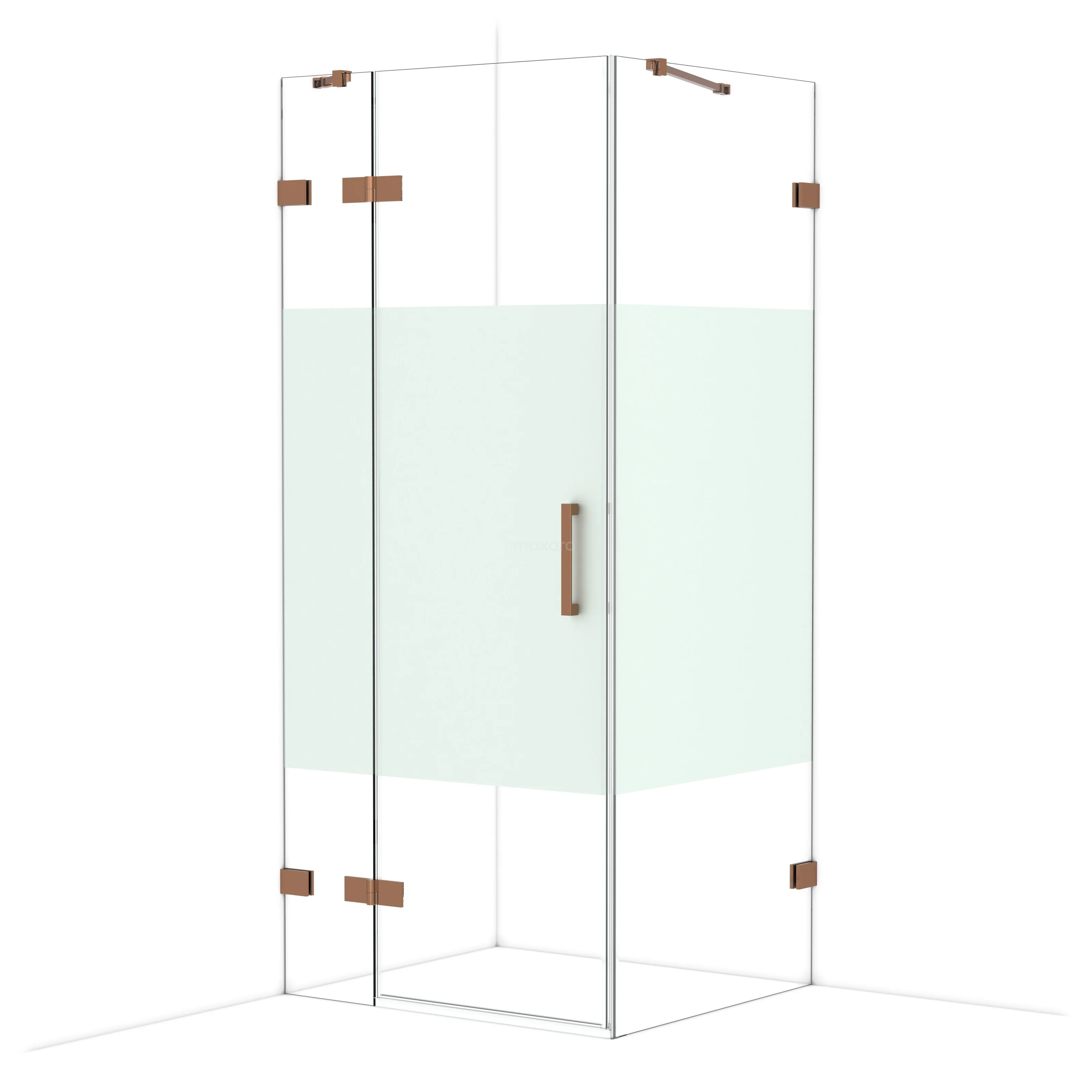 Diamond Shower cabin | 90x80 cm Shiny copper Clear with matt strip Pivot door Rectangle