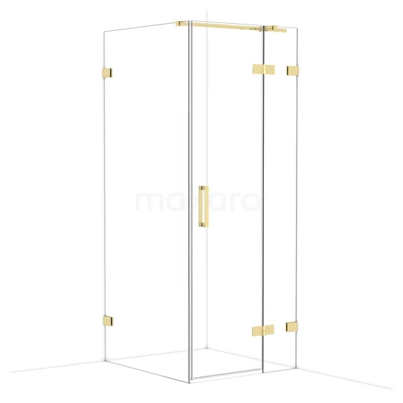 Diamond Shower cabin | 90x80 cm Shiny light gold Clear glass Pivot door Rectangle