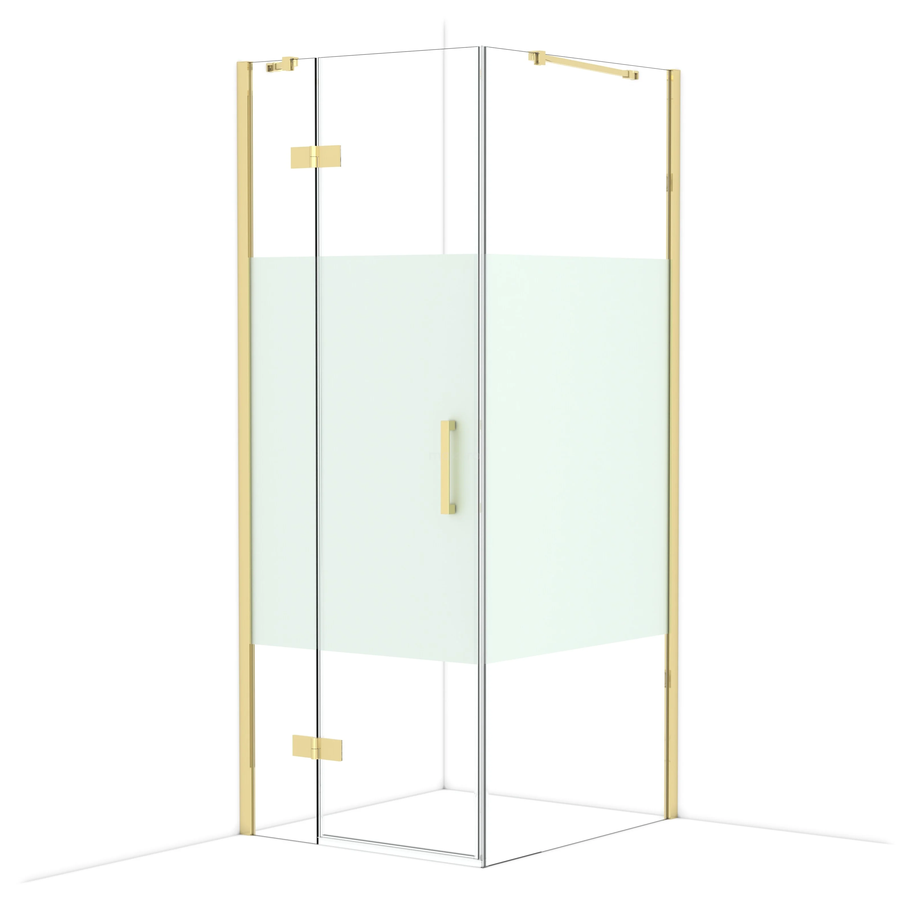 Diamond Shower cabin | 90x80 cm Shiny light gold Clear with matt strip Pivot door Rectangle