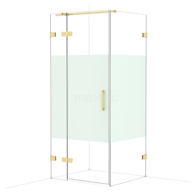 Diamond Shower cabin | 90x80 cm Shiny light gold Clear with matt strip Pivot door Rectangle