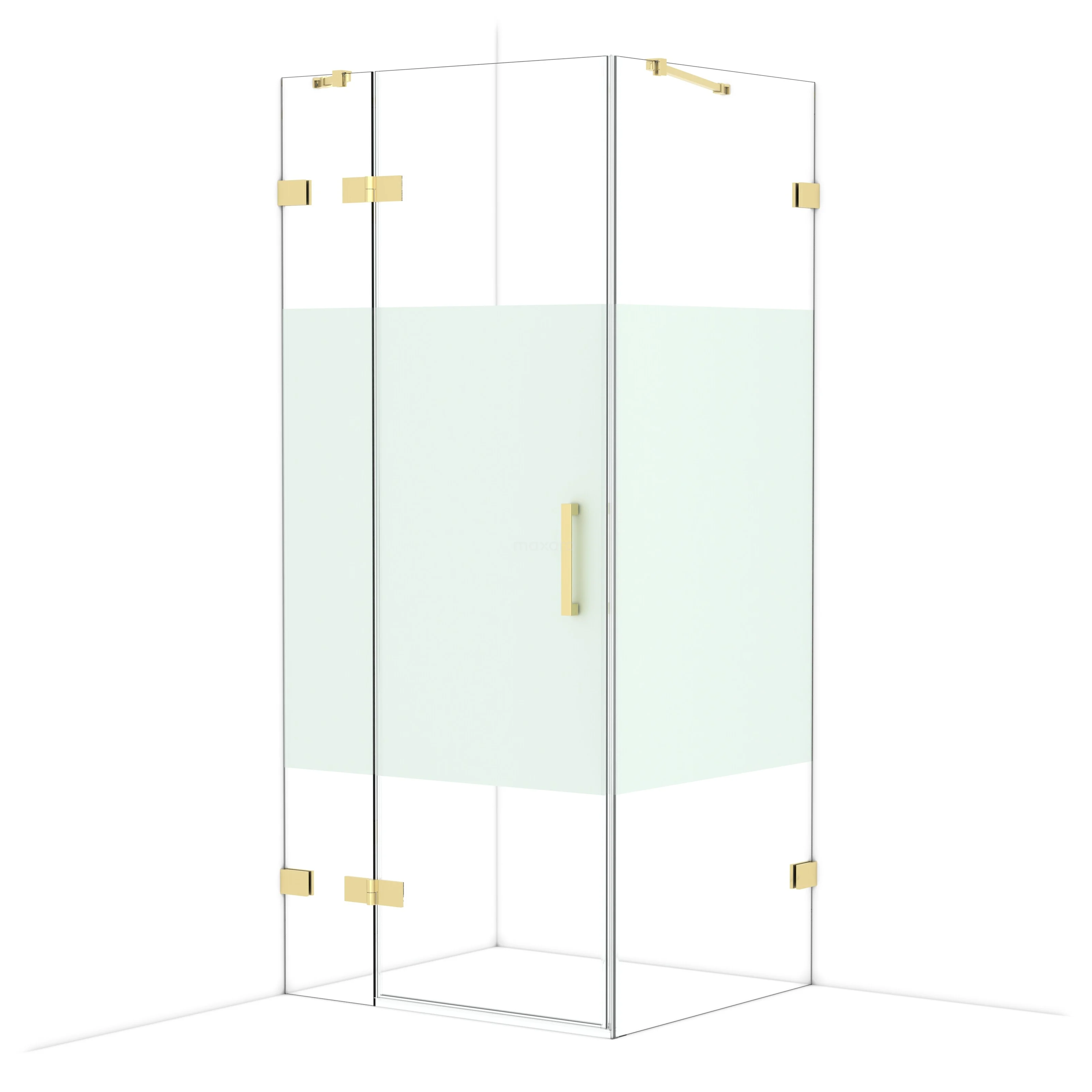 Diamond Shower cabin | 90x80 cm Shiny light gold Clear with matt strip Pivot door Rectangle
