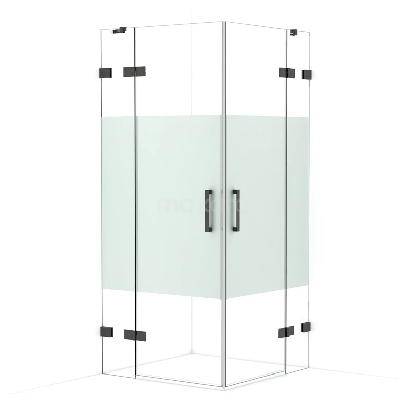 Diamond Shower cabin | 90x90 cm Black chrome Clear with matt strip Pivot door Square