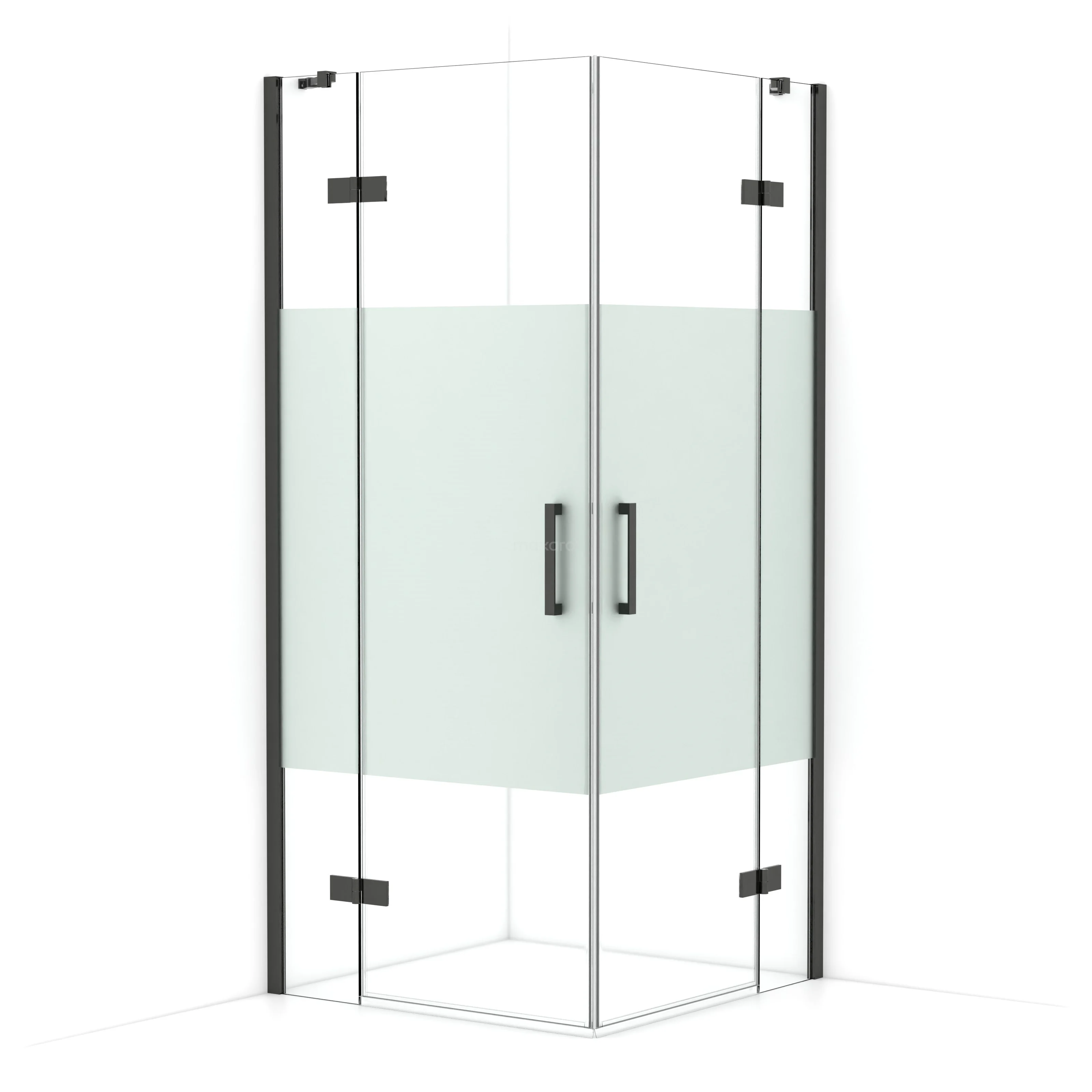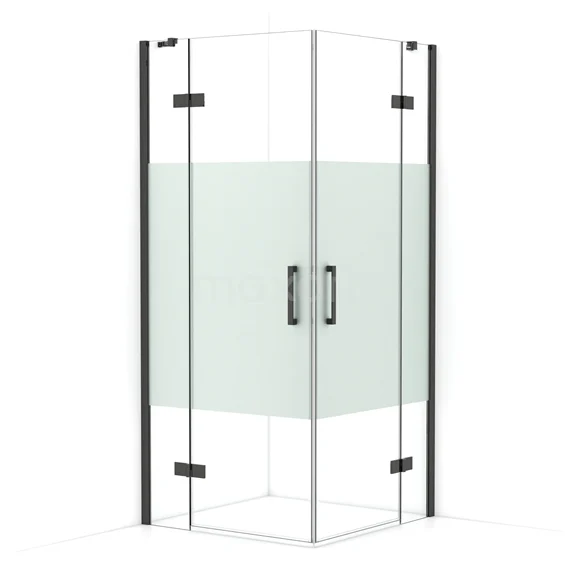Diamond Shower cabin | 90x90 cm Black chrome Clear with matt strip Pivot door Square