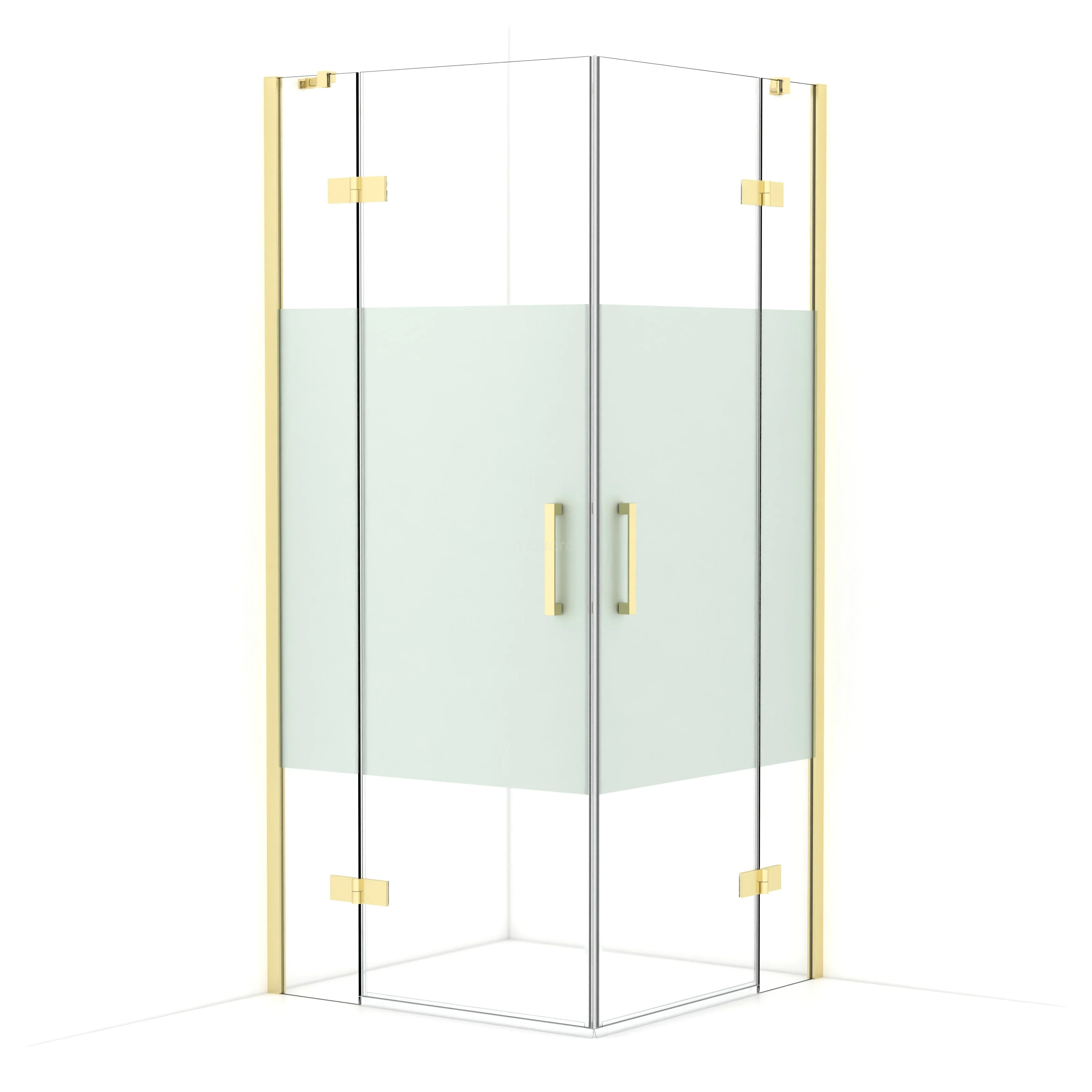 Diamond Shower cabin | 90x90 cm Light gold Clear with matt strip Pivot door Square