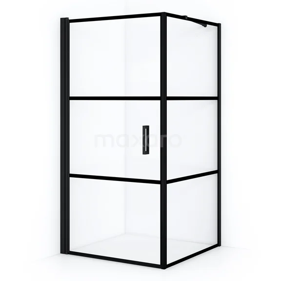 Diamond Shower cabin | 90x90 cm Matte black Clear with 4 black stripes Pivot door Square
