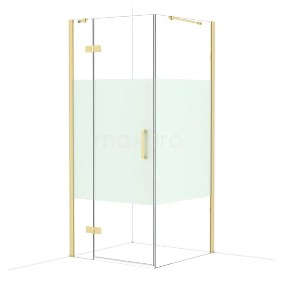 Diamond Shower cabin | 90x90 cm Shiny light gold Clear with matt strip Pivot door Square