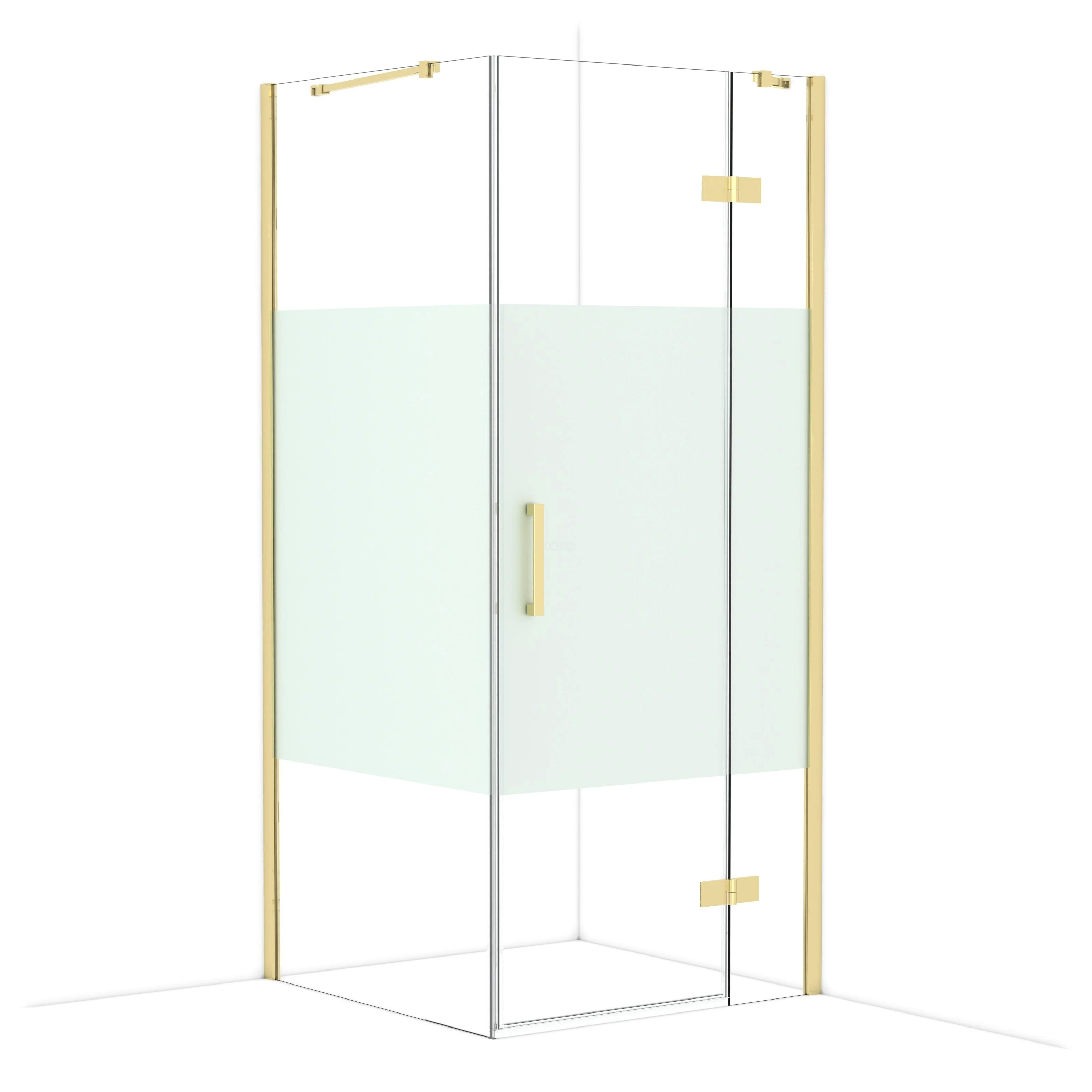 In the stylish Diamond shower cabin measuring 90x90 cm, you can enjoy delightful shower sessions every day. This square cabin is characterised by a wall profile and the vertical handle. This model features a refined and luxurious design in glossy light gold and is equipped with clear glass with a matte strip for more privacy. The shower is adjustable, allowing you to easily make it fit.