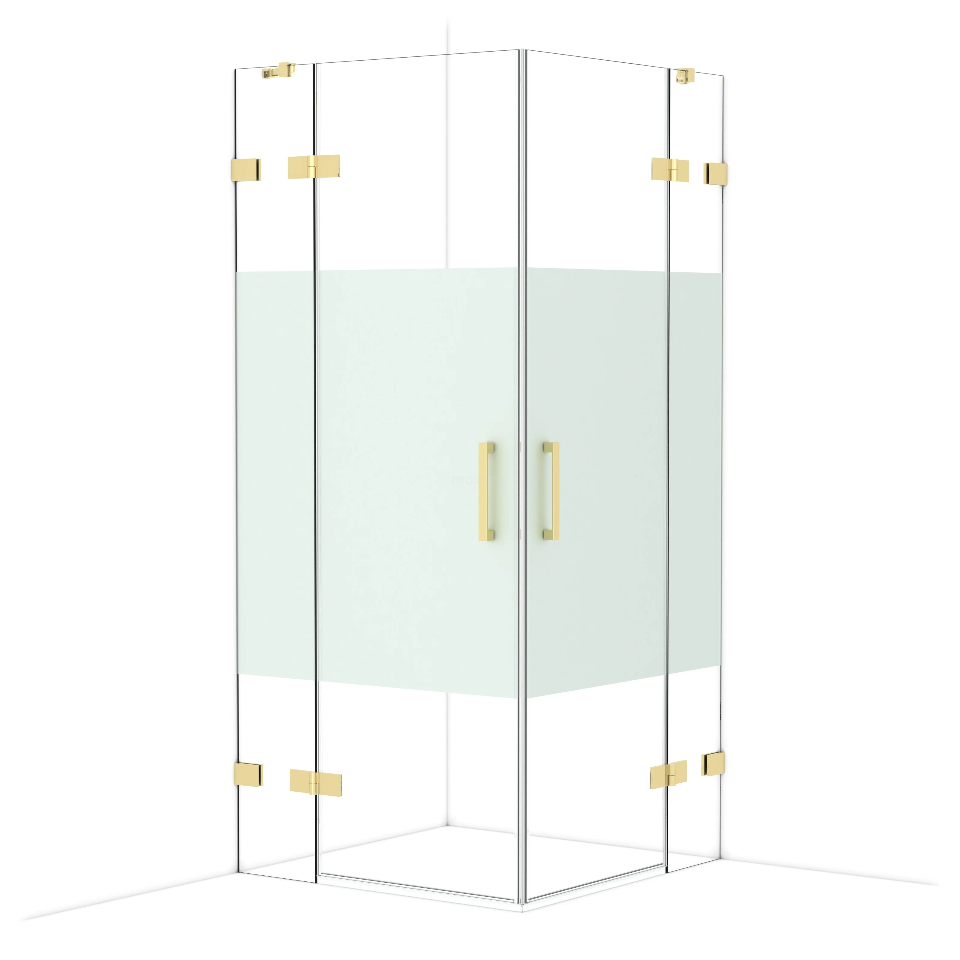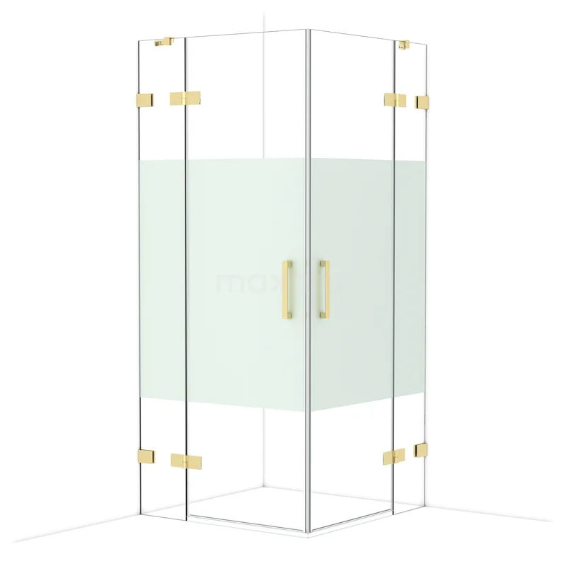 Diamond Shower cabin | 90x90 cm Shiny light gold Clear with matt strip Pivot door Square