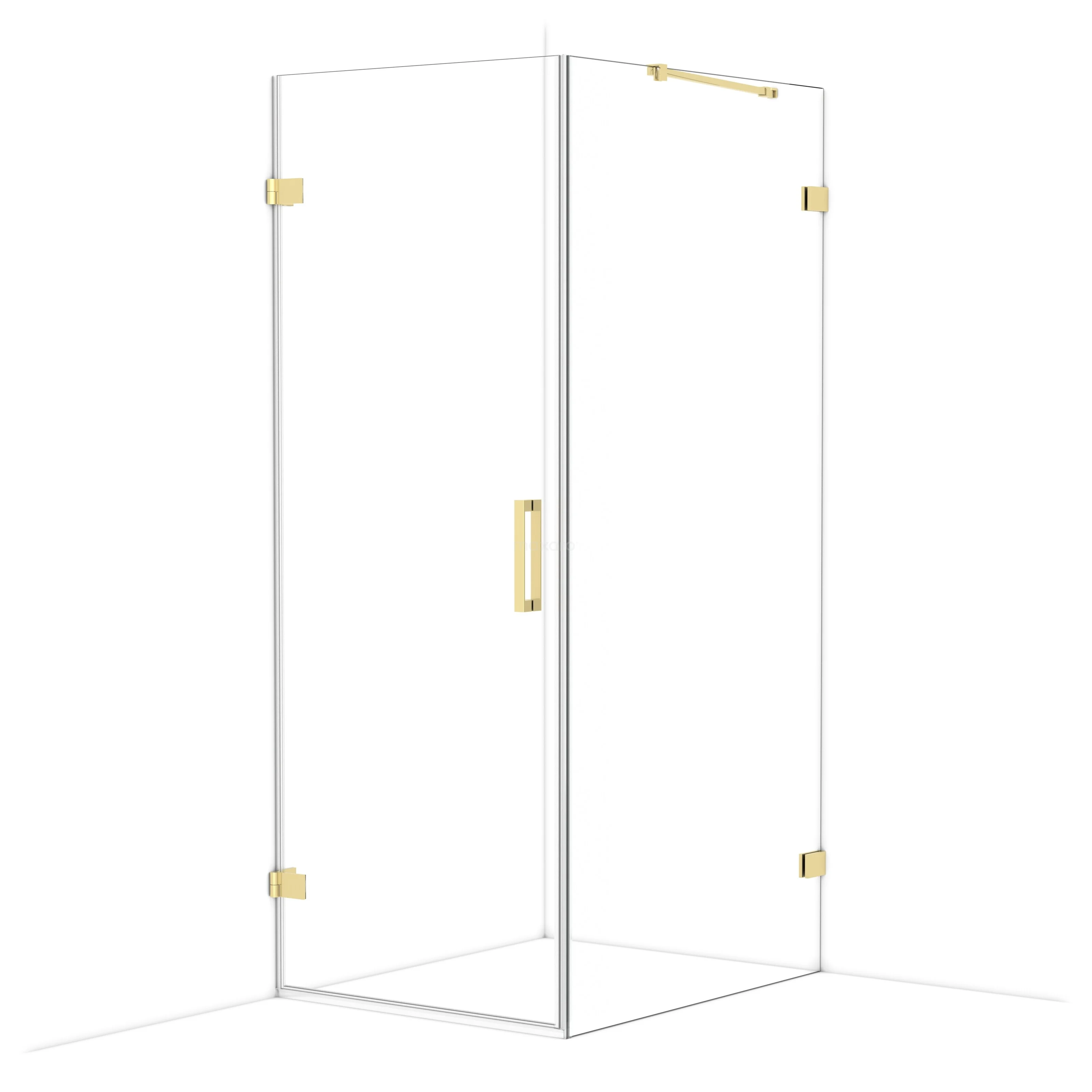 In the stylish Diamond shower cabin measuring 100x80 cm, you can enjoy delightful shower sessions every day. This rectangular cabin is characterised by a two-point attachment and the vertical handle. This model features a refined and luxurious design in glossy light gold and is equipped with clear glass for a spacious feel. The door side has an absolute measurement of 78.1 cm. The fixed wall is adjustable, allowing you to easily make it fit.