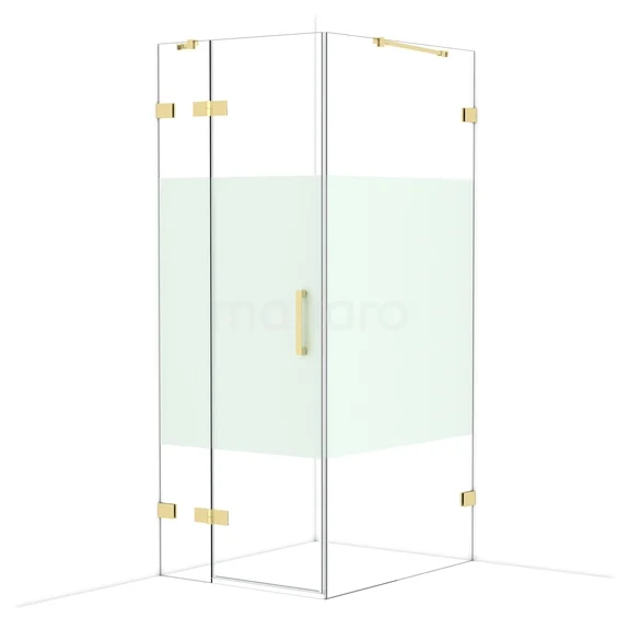 Diamond Shower enclosure | 100x80 cm Shiny light gold Clear with matt strip Pivot door Rectangle