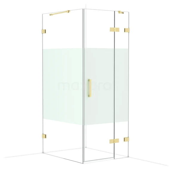 Diamond Shower enclosure | 100x80 cm Shiny light gold Clear with matt strip Pivot door Rectangle