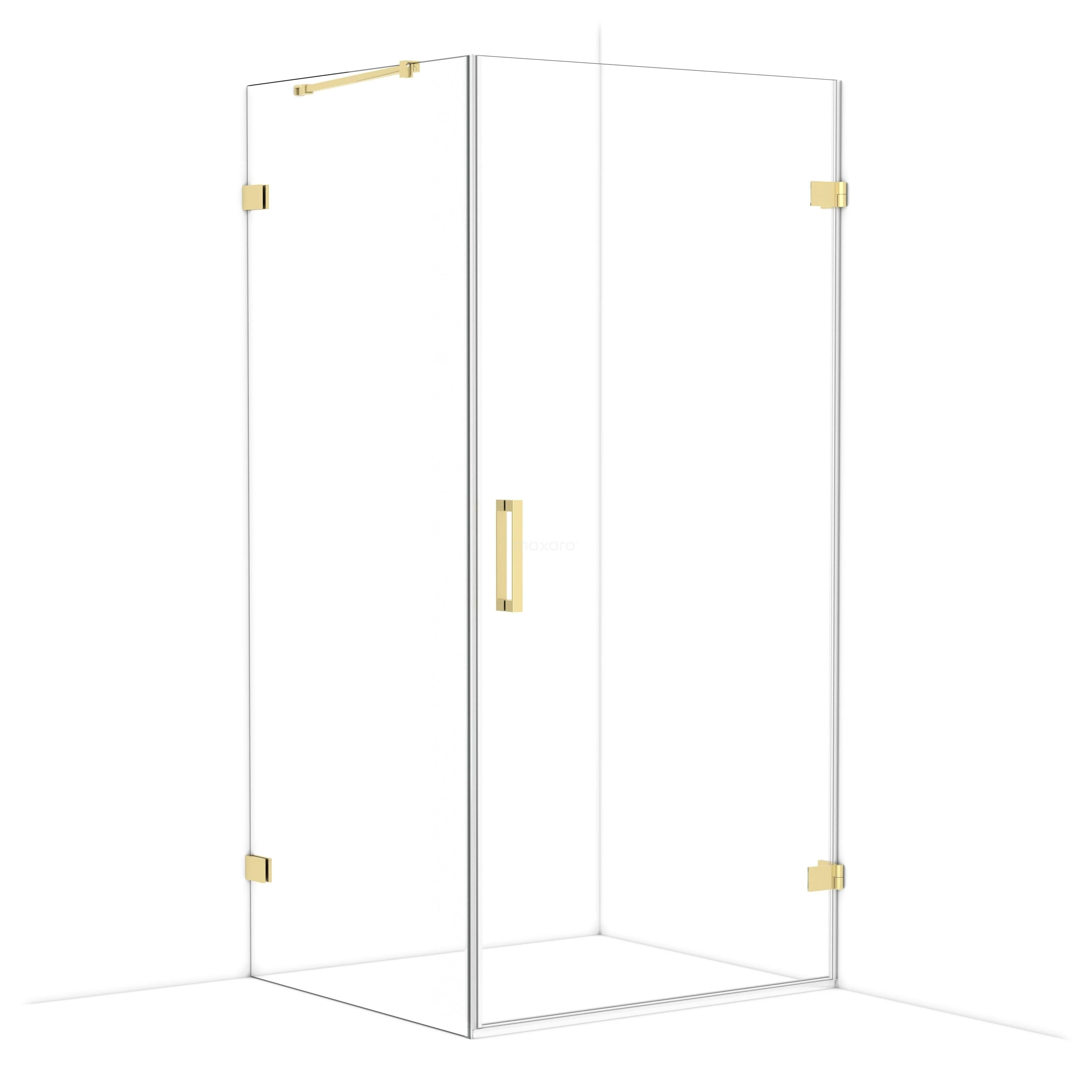 In the stylish Diamond shower cabin measuring 100x90 cm, you can enjoy delightful shower sessions every day. This rectangular cabin is characterised by a two-point attachment and the vertical handle. This model features a refined and luxurious design in glossy light gold and is equipped with clear glass for a spacious feel. The door side has an absolute measurement of 98.1 cm. The fixed wall is adjustable, making it easy to fit.