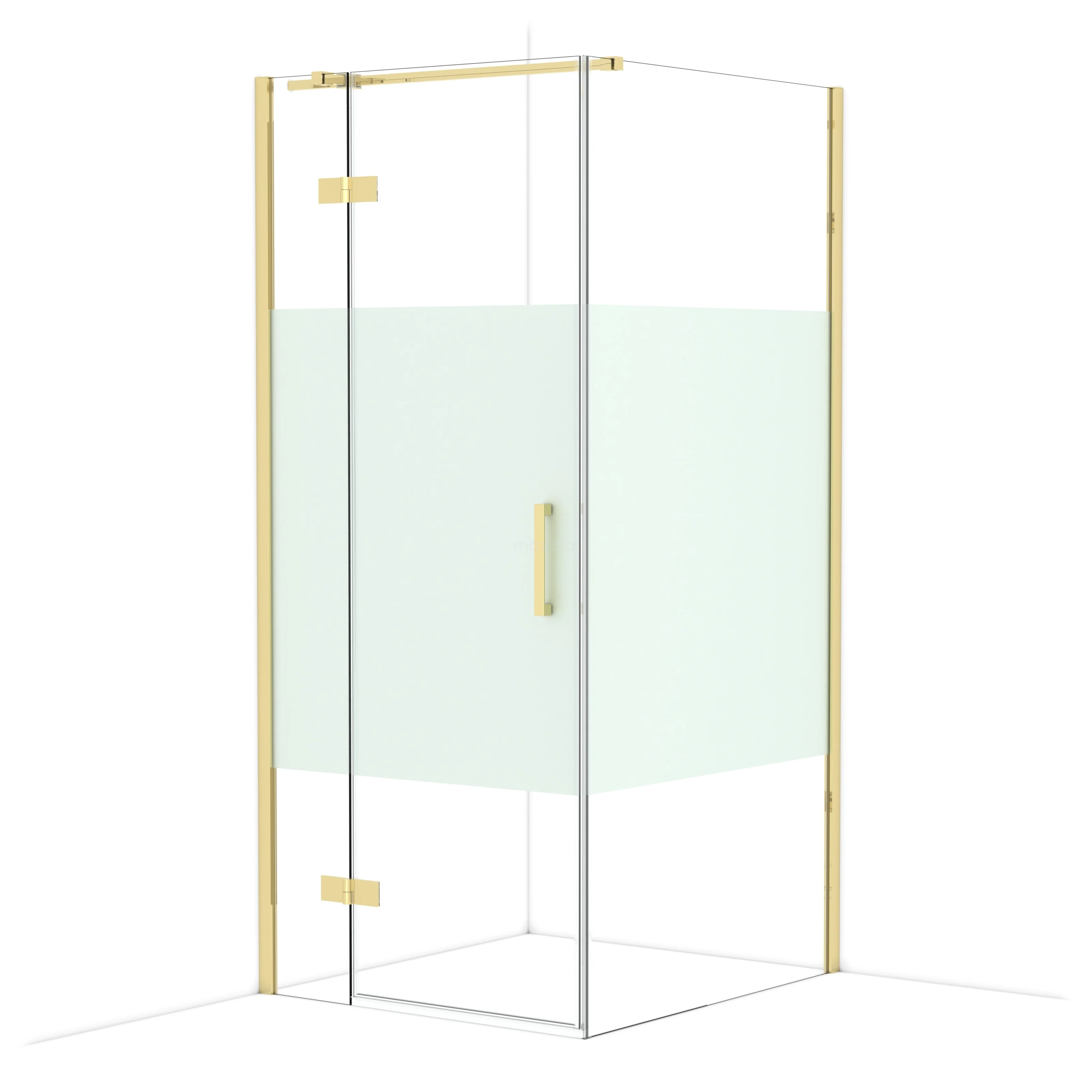 In the stylish Diamond shower cabin measuring 100x90 cm, you can enjoy delightful shower sessions every day. This rectangular cabin is characterised by a wall profile and a vertical handle. This model features a refined and luxurious design in glossy light gold and is equipped with clear glass with a matte strip for more privacy. The shower is adjustable, making it easy to fit.