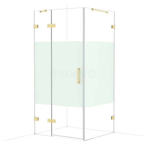 Diamond Shower enclosure | 100x90 cm Shiny light gold Clear with matt strip Pivot door Rectangle