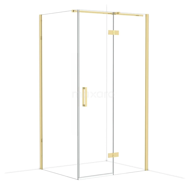 In the stylish Diamond shower cabin measuring 110x90 cm, you can enjoy delightful shower sessions every day. This rectangular cabin is characterised by a wall profile and a vertical handle. This model features a refined and luxurious design in glossy light gold and is equipped with clear glass for a spacious feel. The shower is adjustable, allowing you to easily customise it to fit.