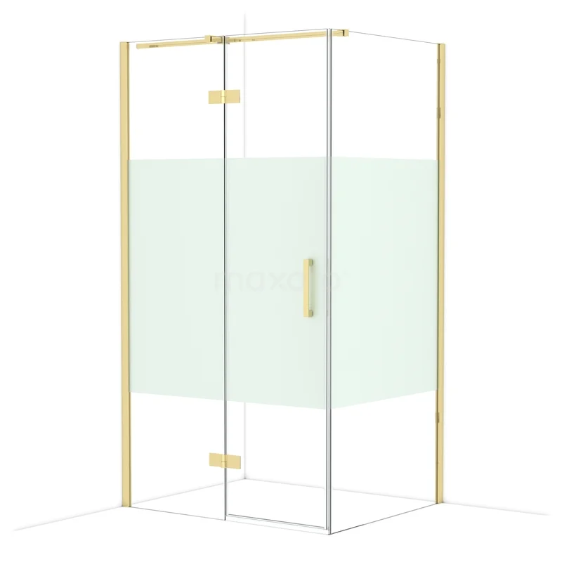 Diamond Shower enclosure | 110x90 cm Shiny light gold Clear with matt strip Pivot door Rectangle