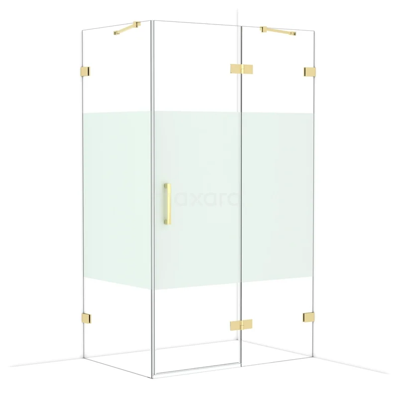Diamond Shower enclosure | 120x80 cm Shiny light gold Clear with matt strip Pivot door Rectangle