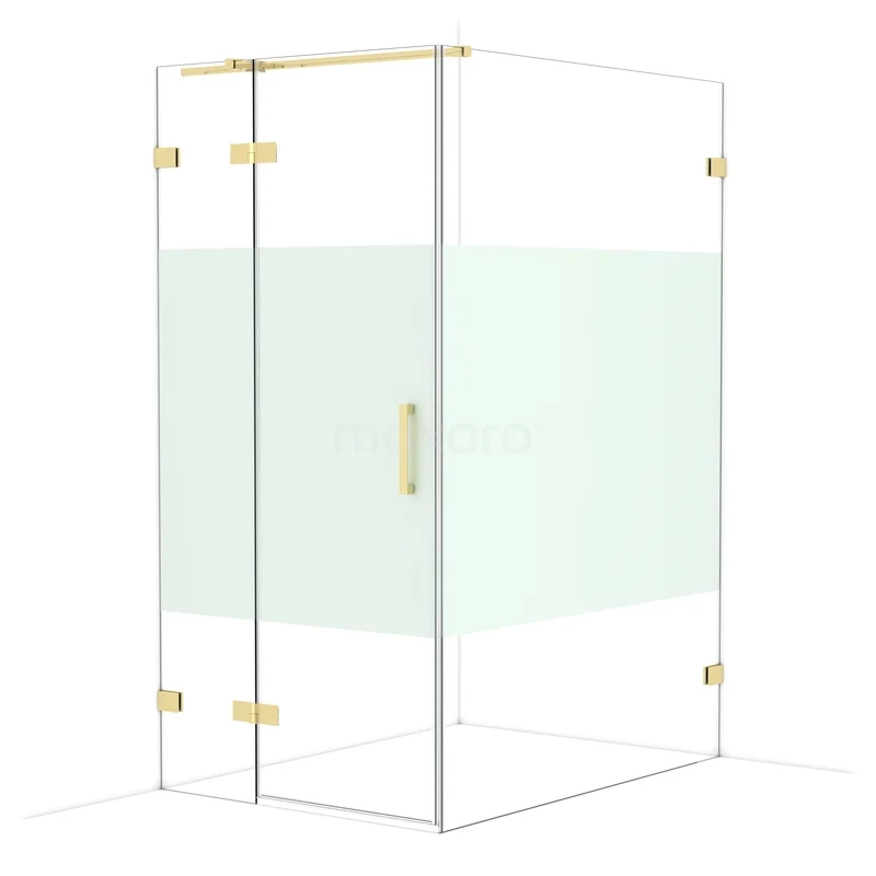 Diamond Shower enclosure | 140x100 cm Shiny light gold Clear with matt strip Pivot door Rectangle