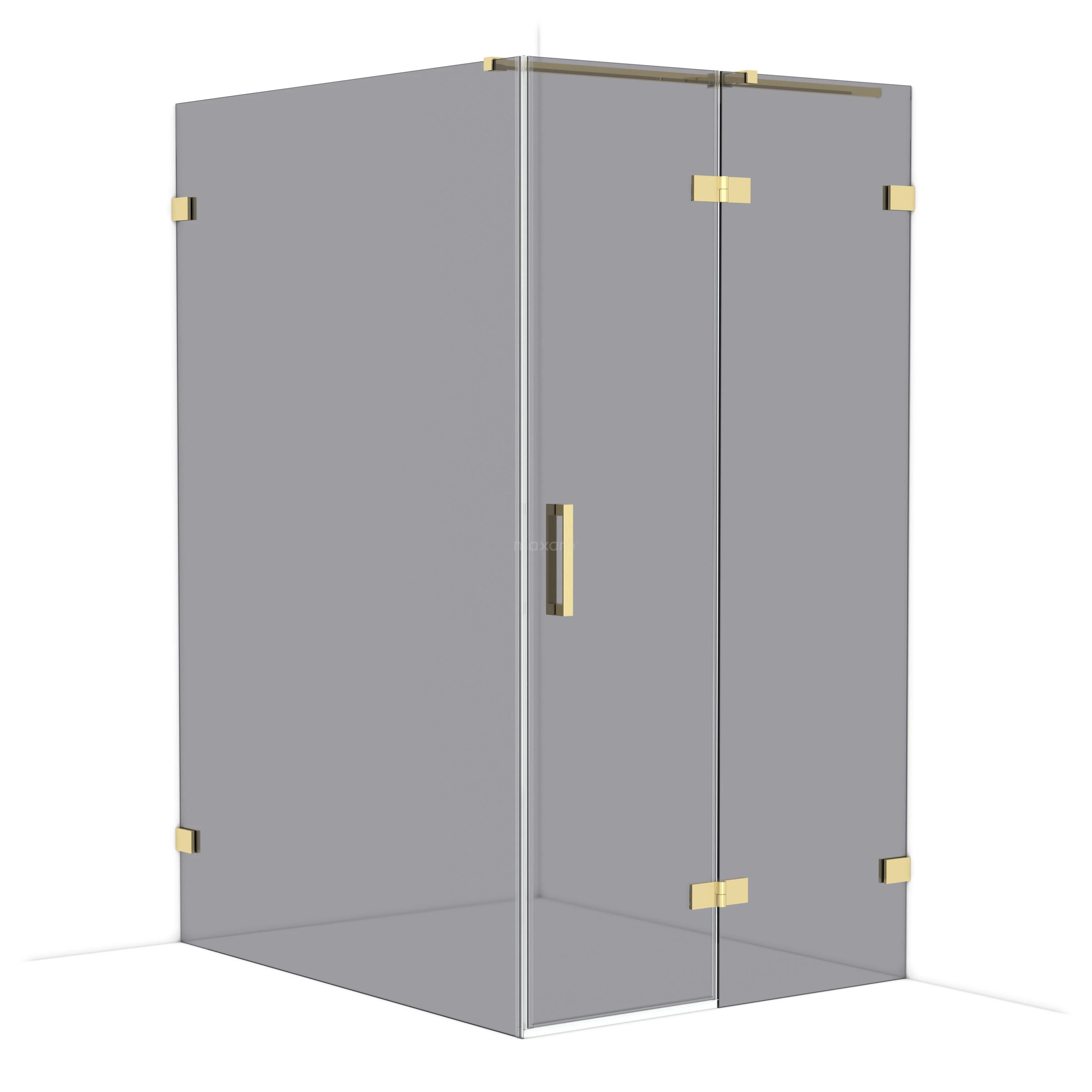 Diamond Shower enclosure | 140x110 cm Shiny light gold Smoke glass Pivot door Rectangle