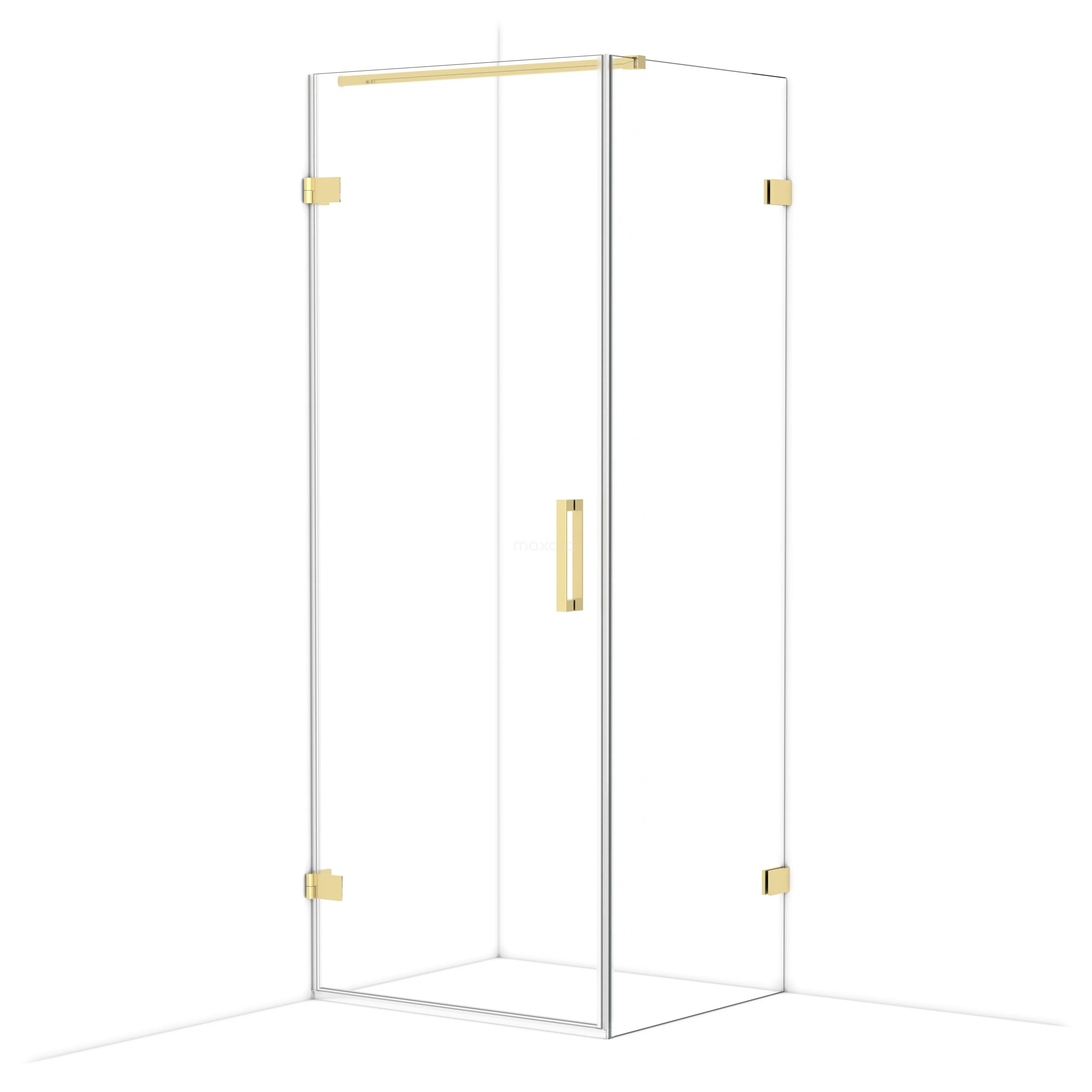 In the stylish Diamond shower cabin measuring 80x70 cm, you can enjoy delightful shower sessions every day. This rectangular cabin is characterised by a two-point attachment and the vertical handle. This model features a refined and luxurious design in glossy light gold and is equipped with clear glass for a spacious feel. The door side has an absolute measurement of 78.1 cm. The fixed wall is adjustable, allowing you to easily make it fit.