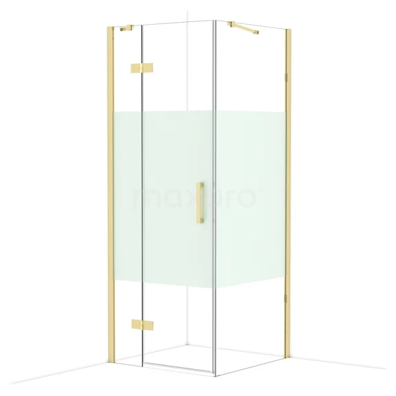 Diamond Shower enclosure | 80x80 cm Shiny light gold Clear with matt strip Pivot door Square