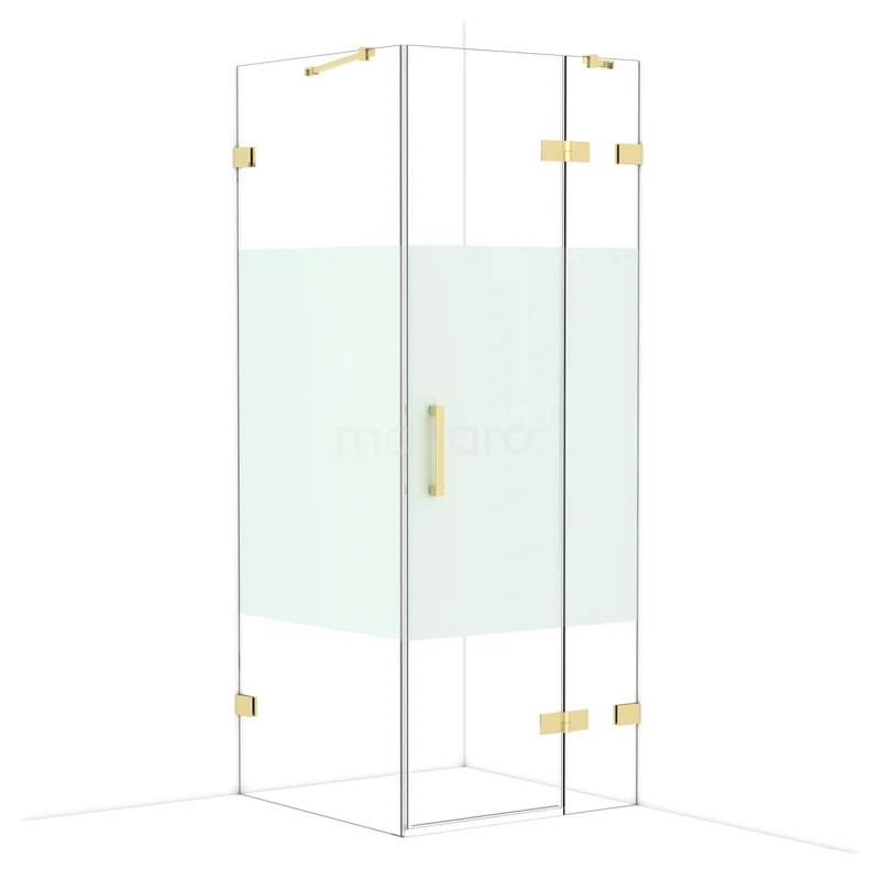 Diamond Shower enclosure | 80x80 cm Shiny light gold Clear with matt strip Pivot door Square