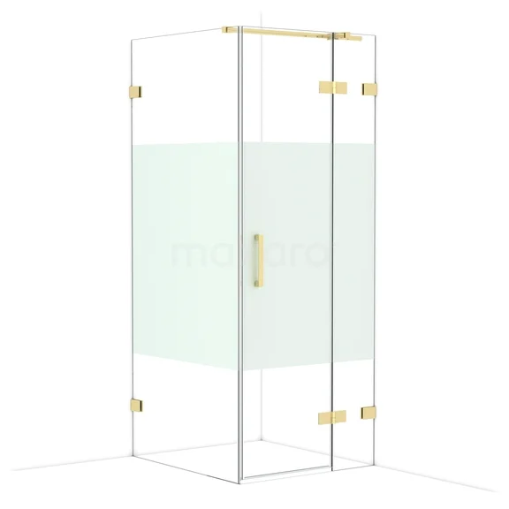 In the stylish Diamond shower cabin measuring 90x80 cm, you can enjoy delightful shower sessions every day. This rectangular cabin is characterised by a two-point attachment and the vertical handle. This model features a refined and luxurious design in glossy light gold and is equipped with clear glass with a matte strip for added privacy. The shower is adjustable, allowing you to easily customise it to fit.