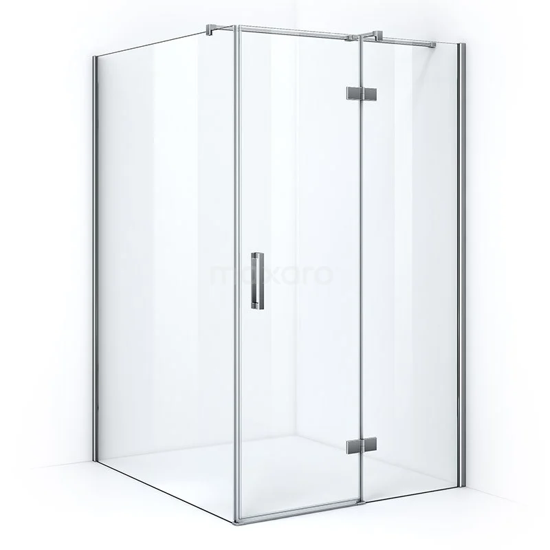 - Shower enclosure fitted with 1 fixed wall with door and 1 fixed wall without door