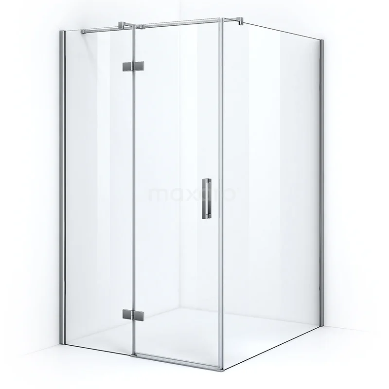 - Shower enclosure fitted with 1 fixed wall with door and 1 fixed wall without door