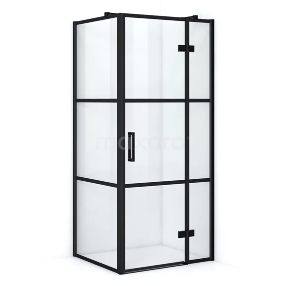 Pearl Shower cabin | 90x80 cm Matte black Clear with 4 black stripes Pivot door Rectangle