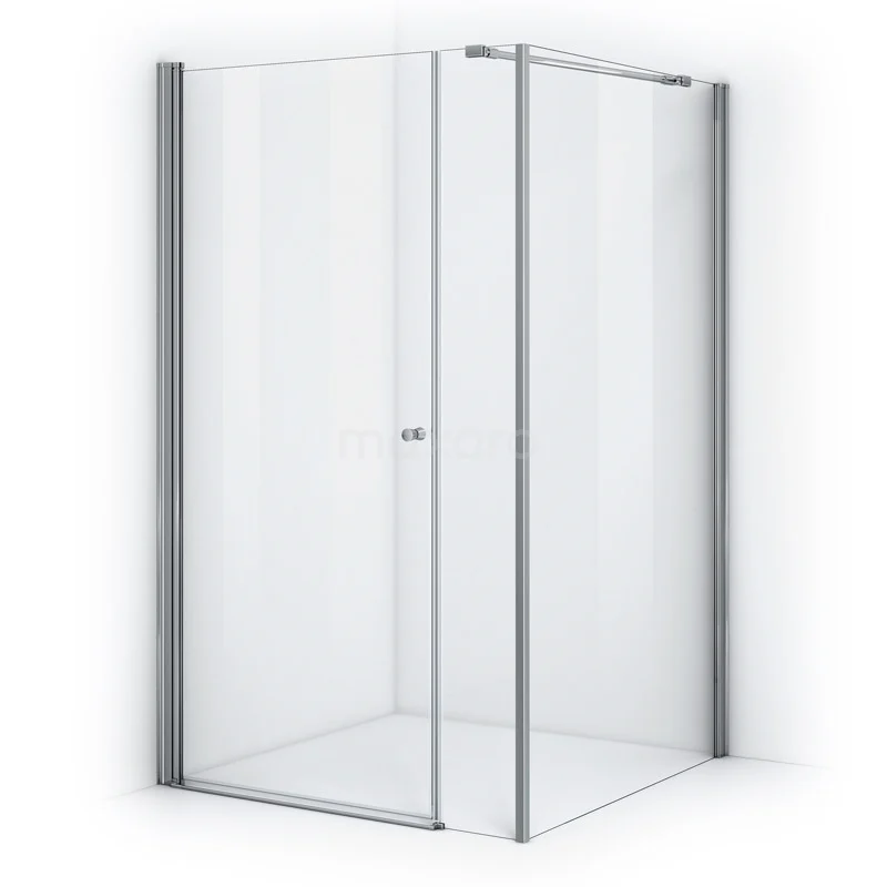 - Square shower enclosure, fitted with 1 fixed wall + 1 side wall and 1 large sliding door