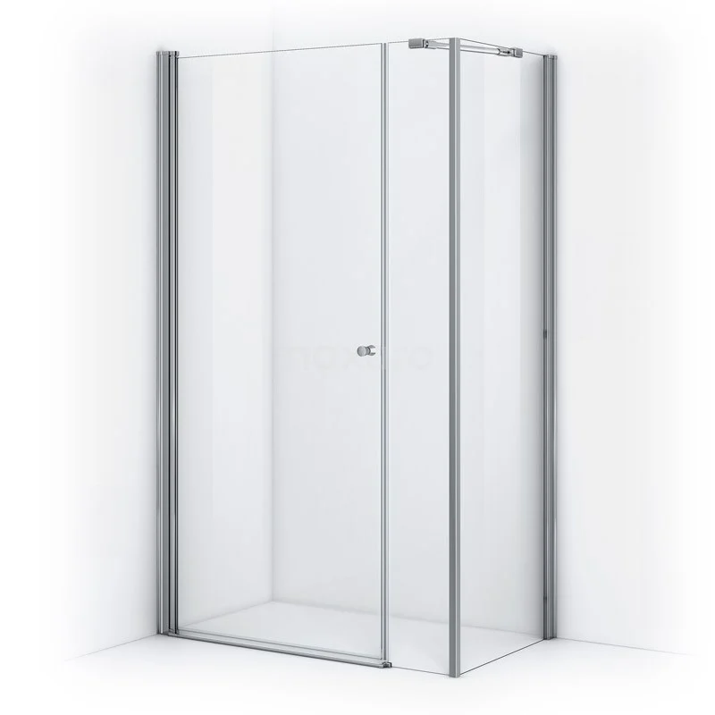 - Rectangular shower enclosure, fitted with 1 fixed wall + 1 side wall and 1 large sliding door