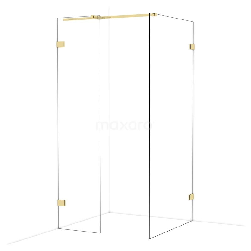 Diamond Walk-in shower | 100x50 cm Shiny light gold Clear glass 2 fixed walls