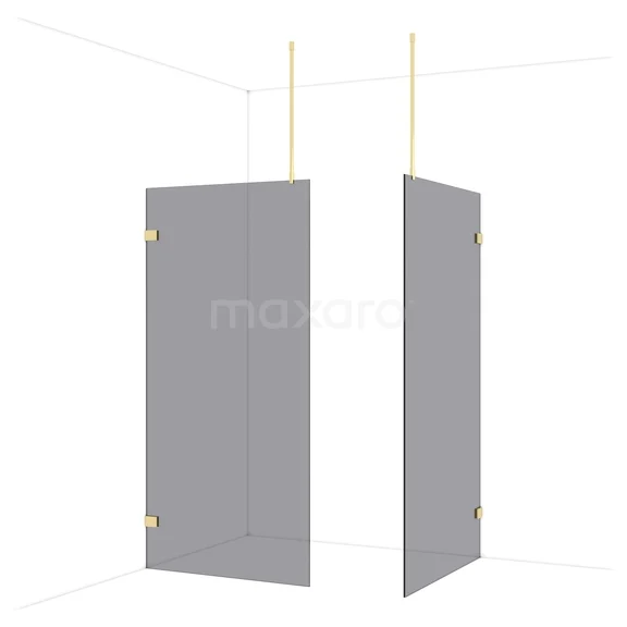 Diamond Walk-in shower | 110x100 cm Shiny light gold Smoke glass 2 fixed walls