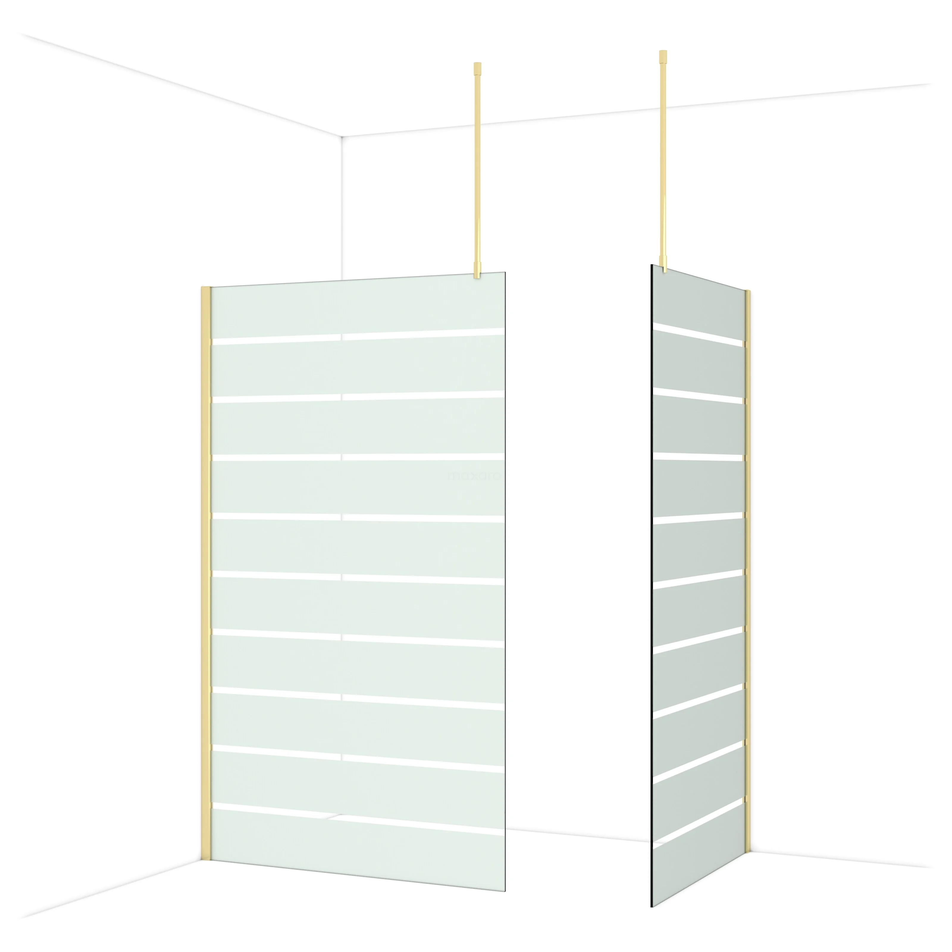 In de stijlvolle Diamond-inloopdouche met een afmeting van 120x100 cm geniet je dagelijks van heerlijke douchesessies. Dit exemplaar heeft een verfijnd en luxe design van glanzend lichtgoud en is voorzien van helder glas met matte strepen voor meer privacy.
