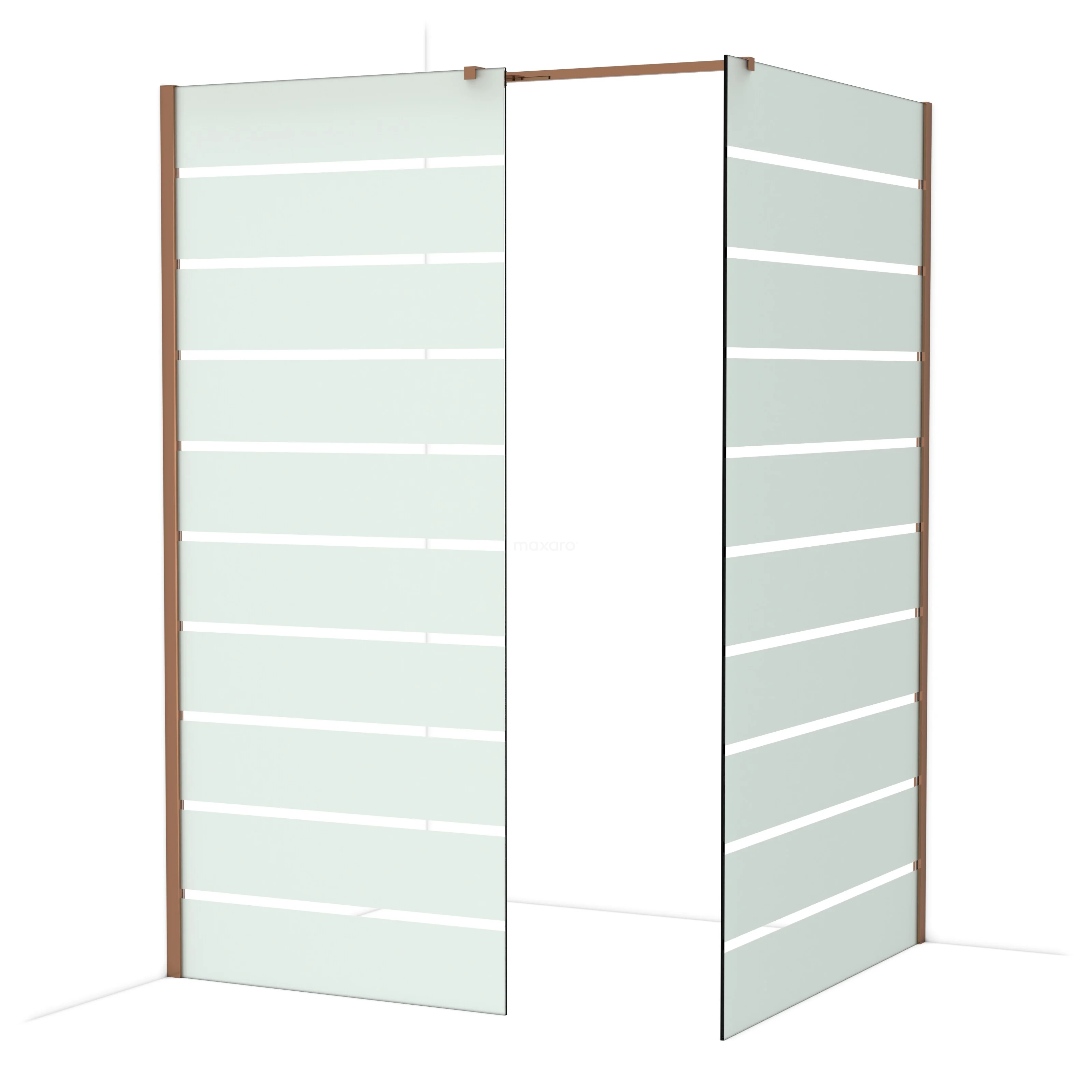 Diamond Walk-in shower | 120x90 cm Glanzend koper Clear with matt stripes 2 fixed walls