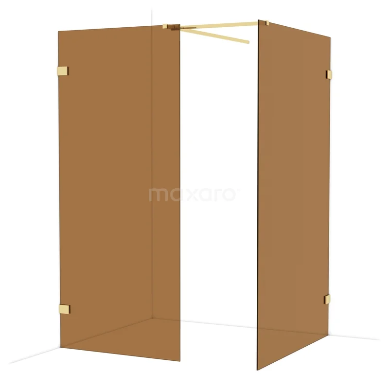 Diamond Walk-in shower | 120x90 cm Glossy light gold Bronsglas 2 fixed walls