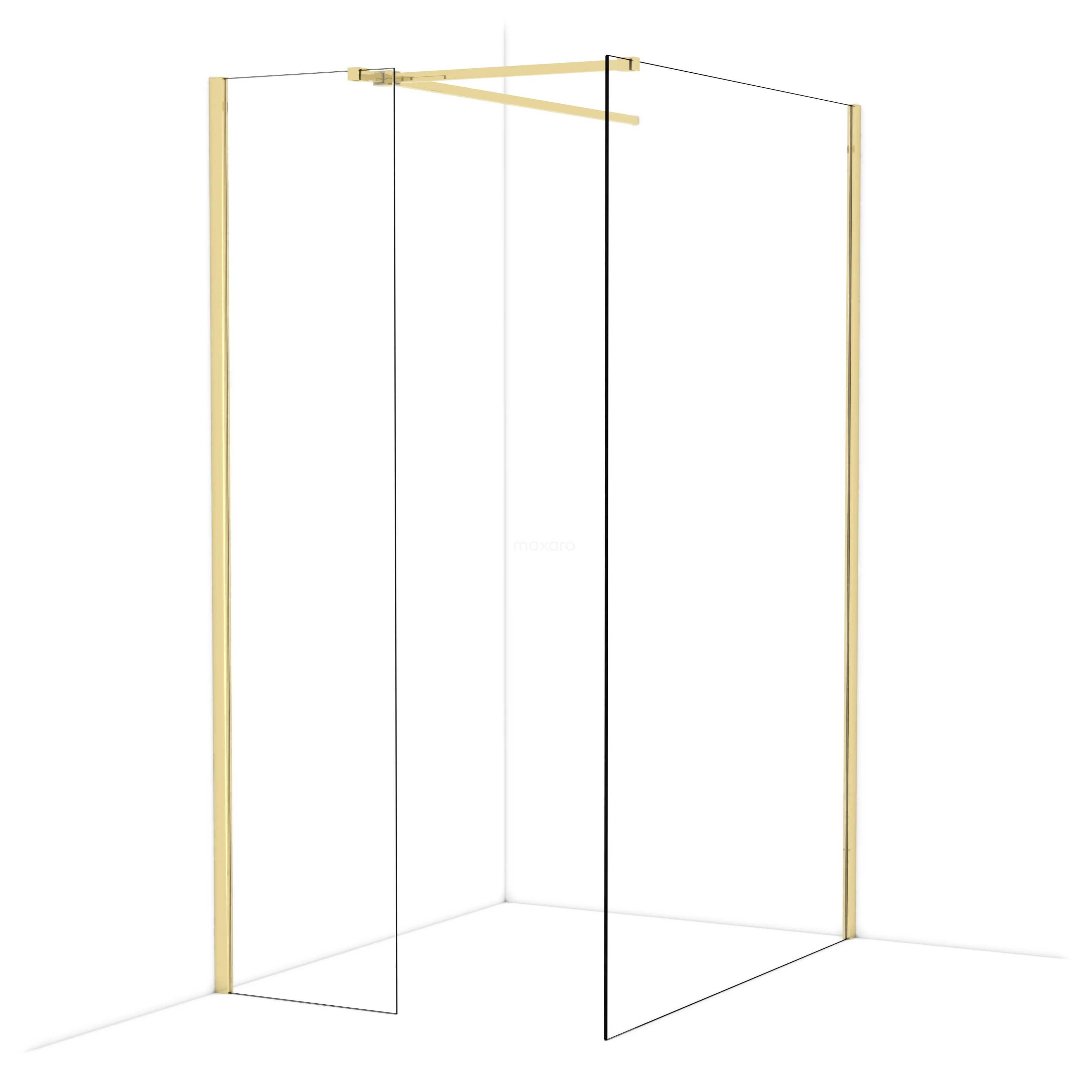 Diamond Walk-in shower | 130x50 cm Shiny light gold Clear glass 2 fixed walls