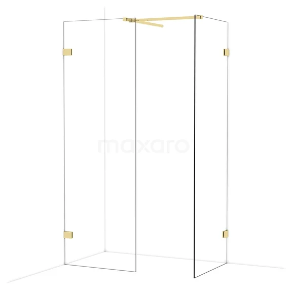 Diamond Walk-in shower | 70x70 cm Shiny light gold Clear glass 2 fixed walls