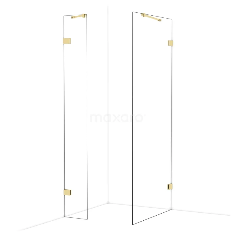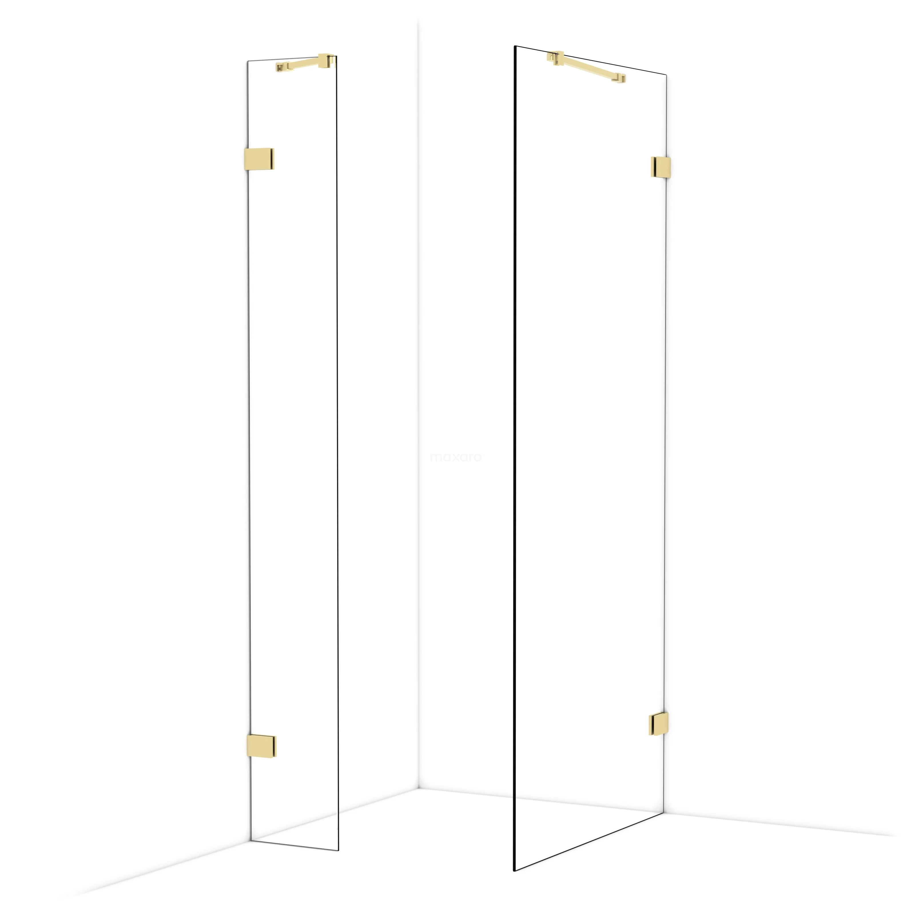 Diamond Walk-in shower | 90x30 cm Shiny light gold Clear glass 2 fixed walls
